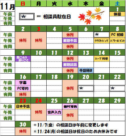 カレンダー 10月 11月